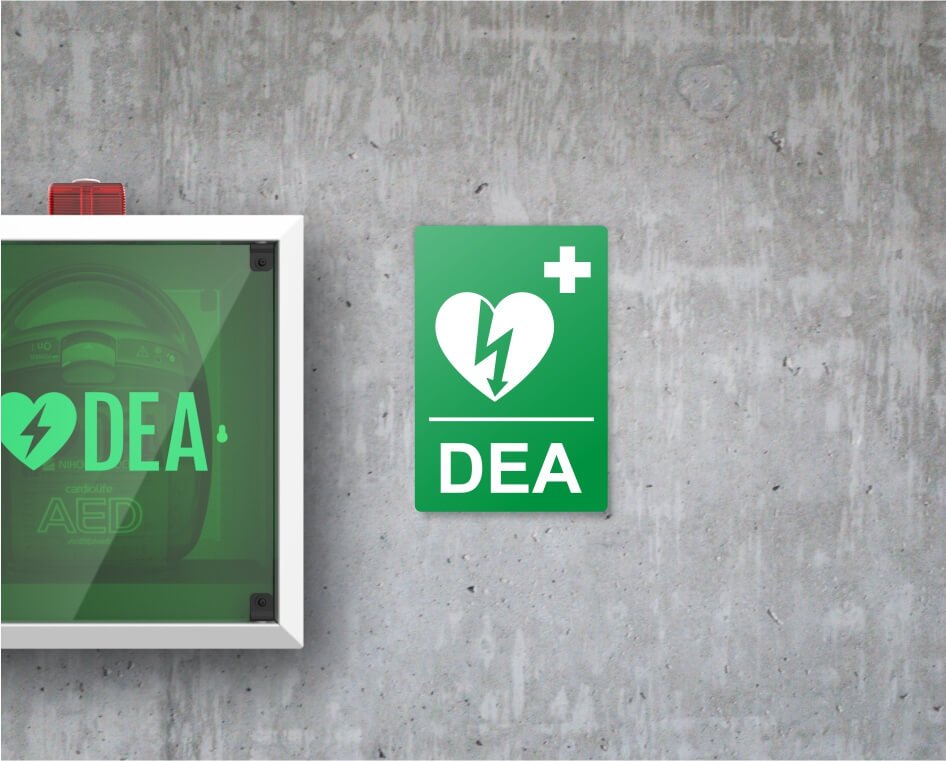 Señalización para zonas cardioprotegidas. Fabricado en lámina de poliestireno, lo que lo hace liviana y durable. Incluye la palabra ‘DEA’ y el símbolo internacional de desfibrilación (corazón con rayo), impresos en blanco sobre fondo verde, garantizando alta visibilidad. Según la normativa vigente, es obligatorio señalizar los desfibriladores externos automáticos (DEA) para facilitar su rápida localización en caso de emergencia.